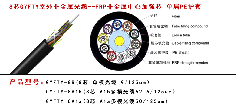 8芯GYFTY非金屬光纜具有良好的機械性能和溫度性能
