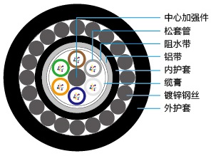 ●采用下列措施來確保光纜的防水性能:松套管內(nèi)填充特種防水化合物;完全纜芯填充;涂塑鋁帶防潮層